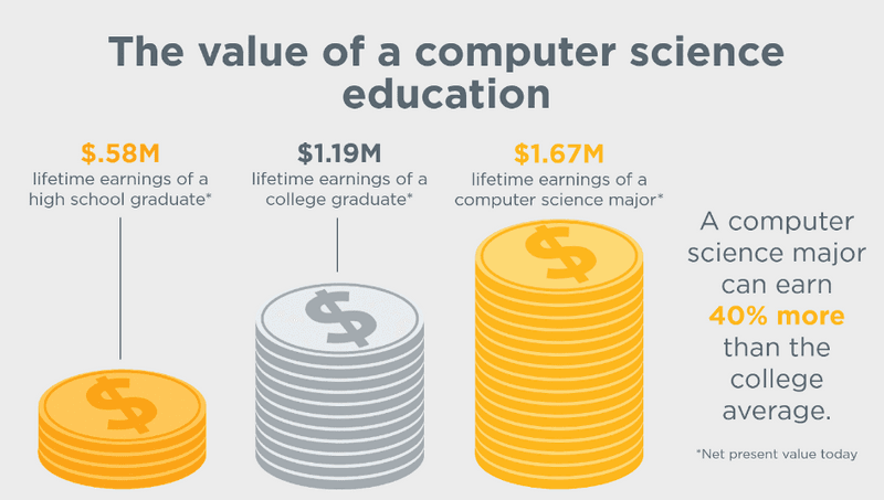 This is a Code.org statistic about teachers trying to introduce or level up computer science in their schools. Look at that rise! Don’t you want to be a part of something so revolutionary, especially when it can pave the way for a future career in coding?