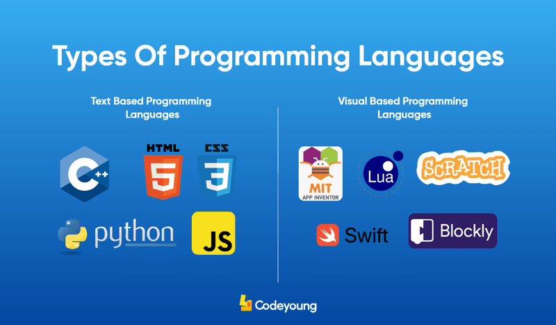 Text-based programming languages: Codes written in plain text format are called text-based programming. Professional programmers and experts in high-level programming mostly use it.