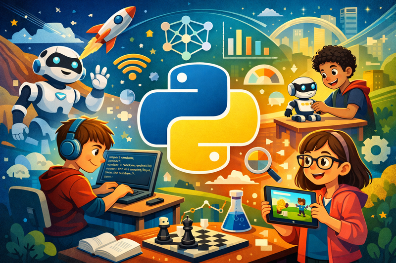 Children learning Python can build games (using Pygame), chatbots, simple AI models, web scrapers, automation scripts, data visualisations, and interactive stories. Older students can work on machine learning projects, data analysis tools, and web applications. The variety of what's possible with Python is one of the strongest reasons to teach it children are rarely bored because there's always a new direction to explore.